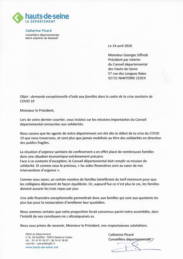Pour une aide exceptionnelle aux familles en situation de précarité par Catherine Picard · 20 avril 2020 La lettre en pdf Partager !